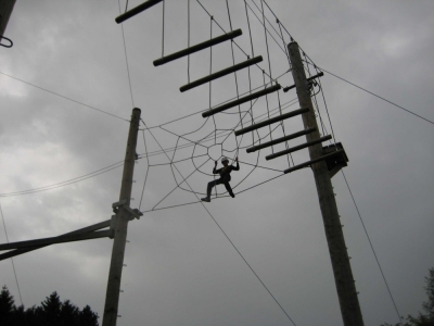 Der Hochseilgarten wird im Freien zwischen Baumstämmen oder in manchen Fällen auch zwischen lebenden Bäumen in einer Höhe von 8m - 12m aufgebaut.